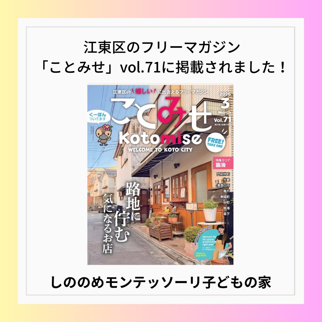 江東区のお店紹介の情報誌「ことみせ」に、マックス幼児教室が掲載されました! どうぞ、お手にとってみてくださいね。 WEBでもご覧いただけます。     #江東区 #しののめモンテッソーリ子どもの家 #モンテッソーリ #マックス幼児教室